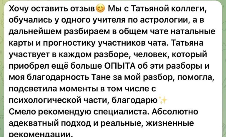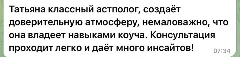 А как коуч Татьяна для меня вообще отдельная ценность: она не даёт шаблонных советов и не говорит «как правильно», но так выстраивает разговор, что в какой-то момент ты сам вдруг ясно понимаешь, что тебе нужно и куда идти. И, пожалуй, самое главное — в ней столько искренней доброты, человечности и принятия, что когда у меня возникает сложная ситуация, первый человек, с кем мне хочется поговорить, — это именно Татьяна 🤗